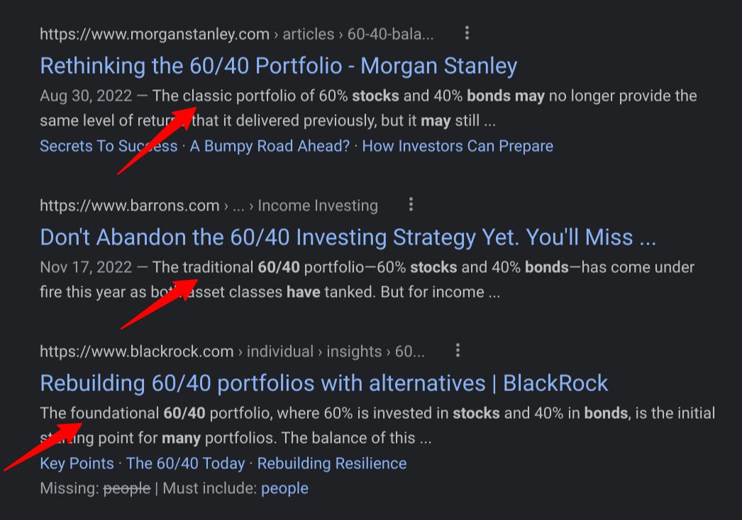 Google wouldn’t tell me how common the strategy is, BUT search results suggest that “everyone” (at least Morgan Stanley, Barrons and BlackRock) agrees that 60/40 is “classic,” “traditional,” or “foundational.”